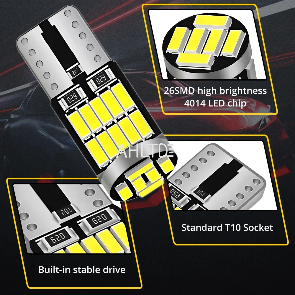 2/4/10X T10 W5W LED Bulb CANBUS No Error 12V 4014-26SMD 400LM 6500K Super Bright White Car Interior Dome Door Maps Trunk Lights